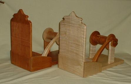 | The Maple Potts loom measures 14" long, 8" wide, 12 1/2" high. It has 35 dents and a double row of holes. $210.00 |